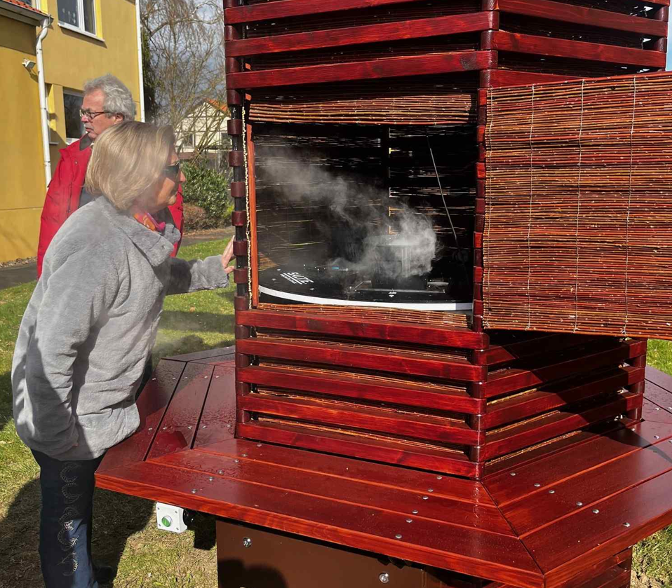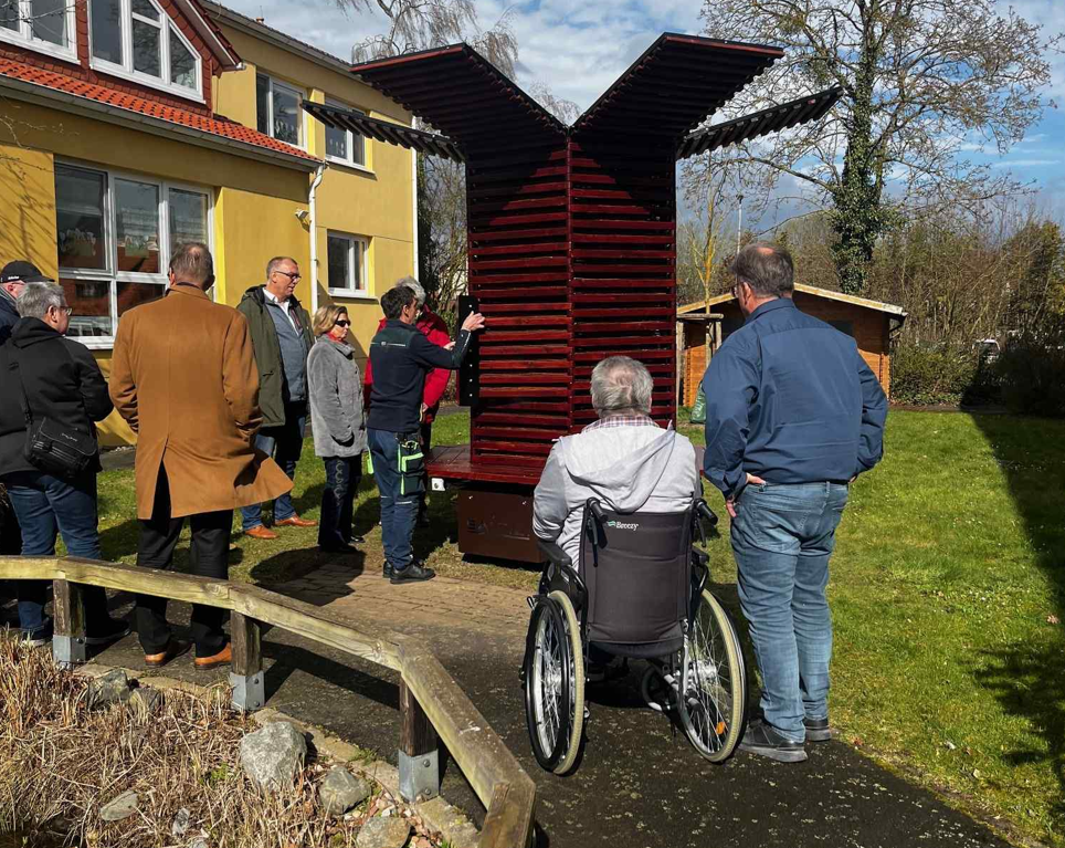 Die neue Gradieranlage im Garten am Fischteich dient nicht nur als Inhalationsanlage, sondern auch als Ort der Begegnung, der Erholung und des gemeinsamen Alltags. Sie steht Bewohnerinnen und Bewohnern, Angehörigen, Gästen des öffentlichen Cafés sowie den Mitarbeitenden zur Verfügung.